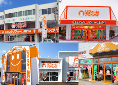 | 「リフォームアウトレット」の各店舗 ・上越店/上越市富岡3457 イオン上越店別棟 ・新潟平島店/新潟市西区平島2-14-2 ・新潟亀田店/新潟市江南区早苗2-1-44 ・新潟松崎店/新潟市東区新松崎1-7-6 ・新潟とやの店/新潟市中央区堀之内南1-32-16 【新潟・下越エリア】【新潟・上越エリア】 |