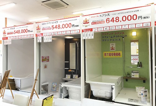 6台展示中です。(TOTO、LIXIL、クリナップ、TOCLAS、panasonicAWE)浴室 1坪タイプのサイズを確かめることができます。 |