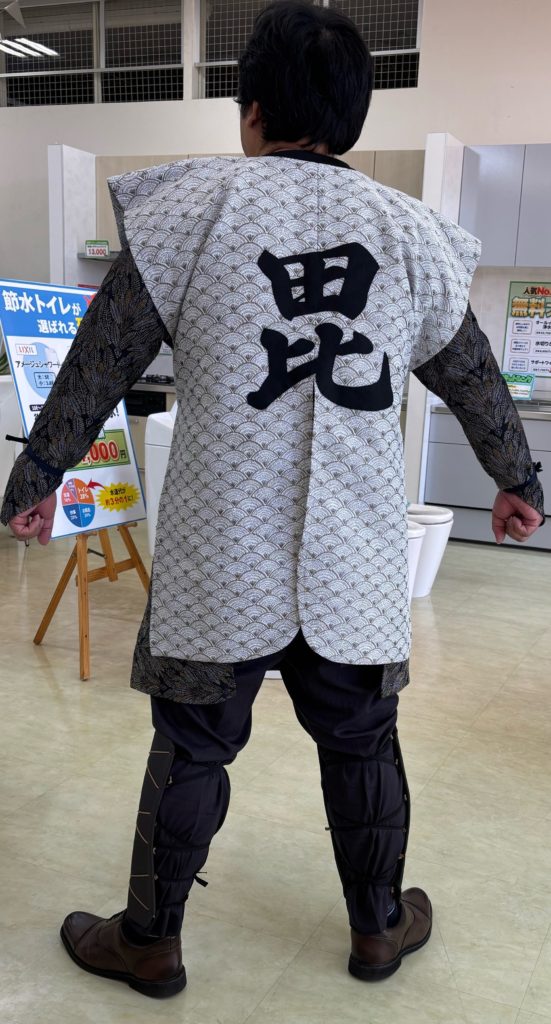 私も背面の『 毘 』をフェルトで作り縫い付け、作業に参加しました😌