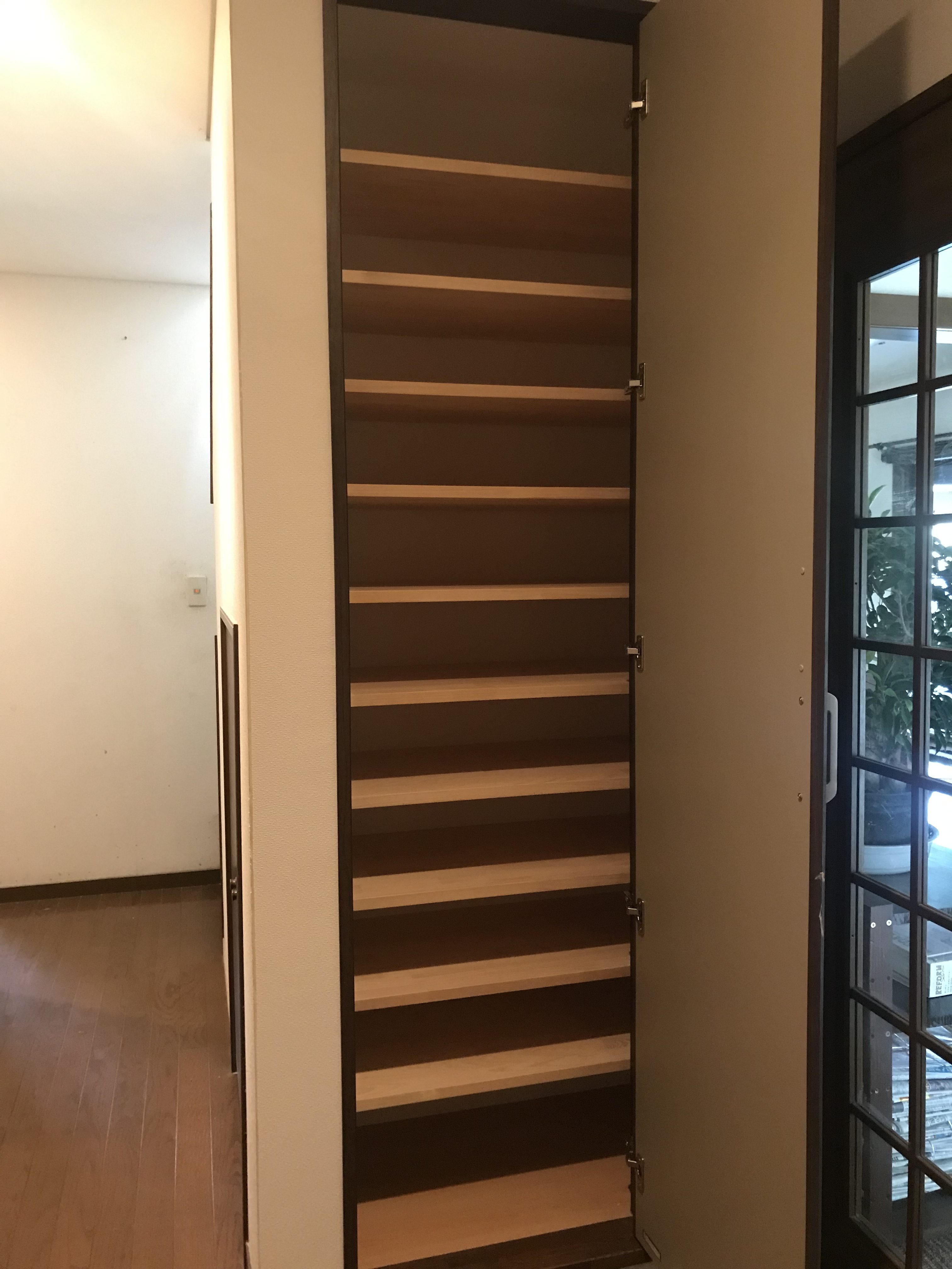 ↑ 柱よりも横に屋根をだしてもらいいつかは自転車を置けるように!