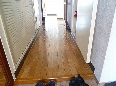| 廊下: | クッションフロア剥し、 木工事(下地工事)、 フローリング張り、 框取付 |