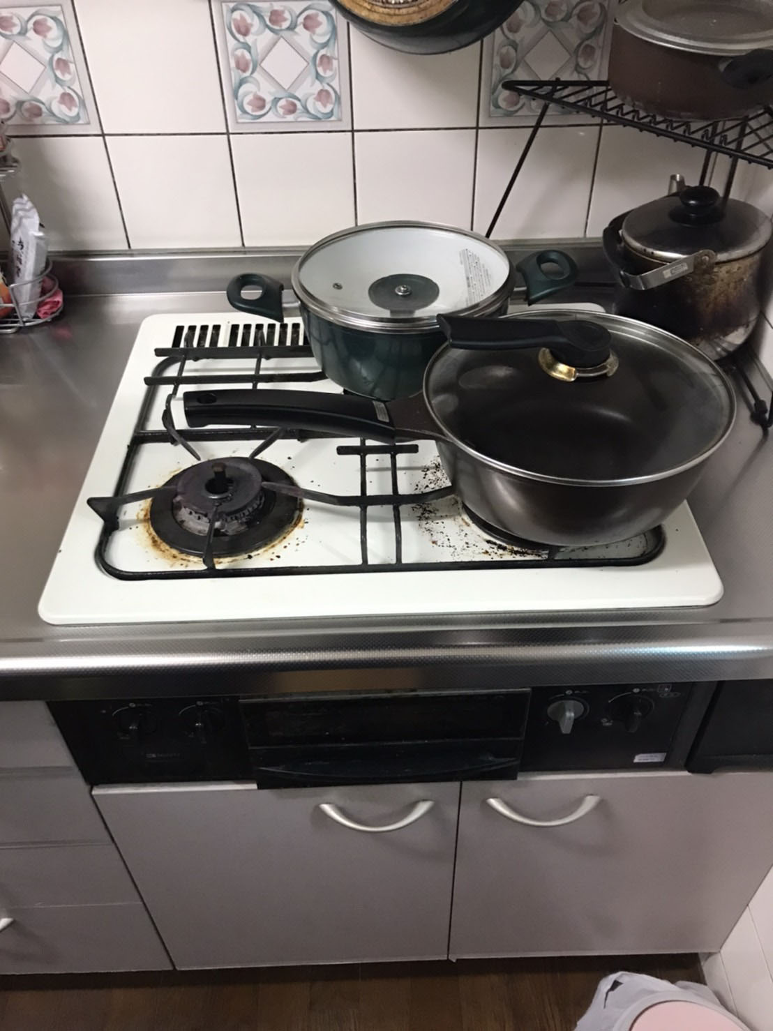 築20年 ホーロートップコンロへの交換。以前よりも五徳がシンプルな形状なのでお手入れがしやすくなりました。
